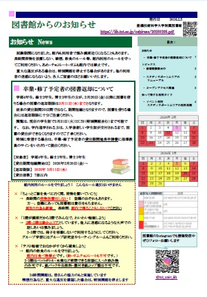 現在,図書館のお知らせは,随時メールおよび図書館ホームページで配信しています。