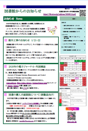 現在,図書館のお知らせは,随時メールおよび図書館ホームページで配信しています。