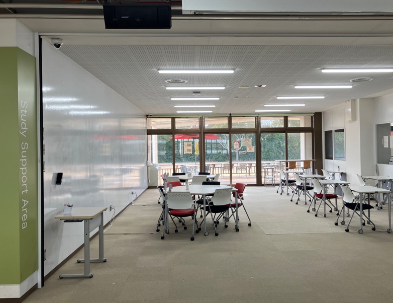 ・イベント等で使用することも可能です ・スタディサポートエリア通路の奥から外のデッキへの出入りができます |